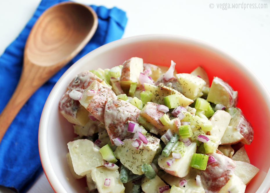 May I suggest an unorthodox option? Make potato salad your main meal and pair it with a protein side (a veggie burger patty, bunless?). Alternative: If it’s a chilly day, how about hot soup? This creamy caramelized potato-onion soup should fit the bill!