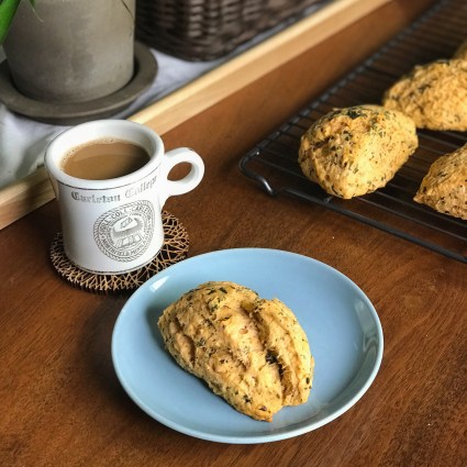 When I got back home, Steven was baking scones! This is becoming a bit of a weekend tradition for him, and I’m not mad about it. This week, he made tomato-basil scones, which I enjoyed with a cup of coffee. I quit coffee a couple months ago after realizing I was getting caffeine withdrawal headaches when I didn’t drink it, so it’s a somewhat rare treat now. I enjoy the taste of coffee and I liked the morning ritual of drinking it, but I haaate the idea of having a caffeine addiction, so I quit cold turkey as soon as I realized what was going on. :( Now that I don’t drink it regularly, I’m extra sensitive to it — a glass of cold brew gets me wired! Anyway, this was just regular ol’ hot coffee with So Delicious caramel creamer. I usually drink hot coffee black, but I had some of this leftover from a family visit last month and didn’t want to waste it.