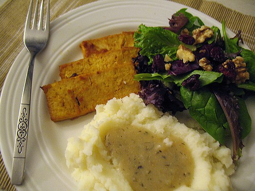 Aww, little Kelly celebrated Thanksgiving alone! This was my first year living in Madison, Wisconsin, where I moved from Rhode Island for my first post-college job. I can’t remember whether my roommate also stayed or whether she flew home to New York State. I (apparently) enjoyed a pretty simple dinner of tofu, salad and some last-minute mashed potatoes I whipped up when the craving struck. I also apparently spent the day knitting and watching movies. That… sounds like a pretty darn good Thanksgiving, actually!