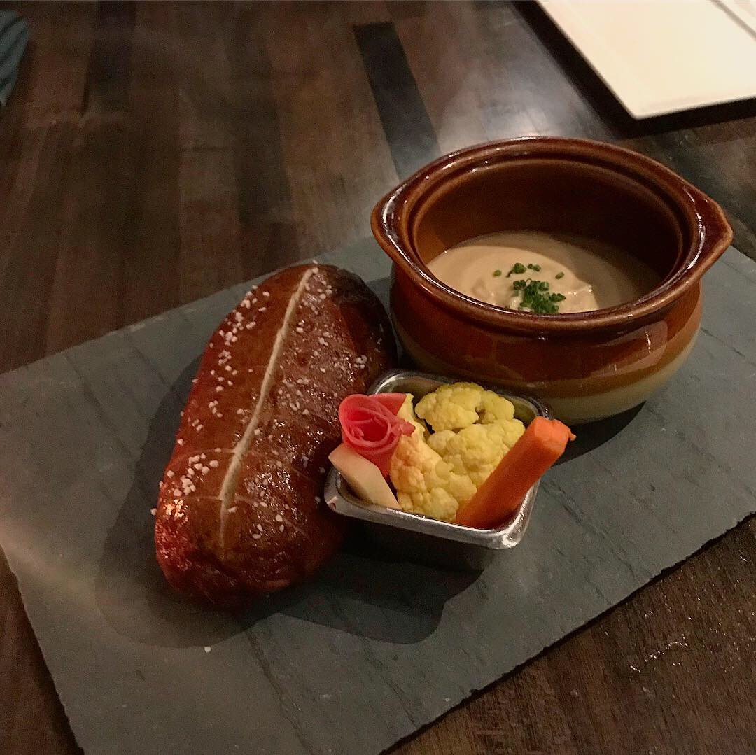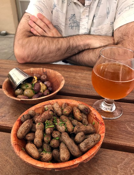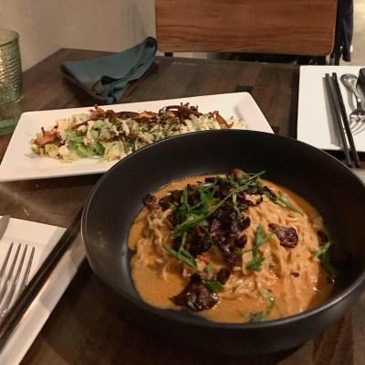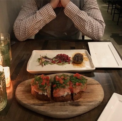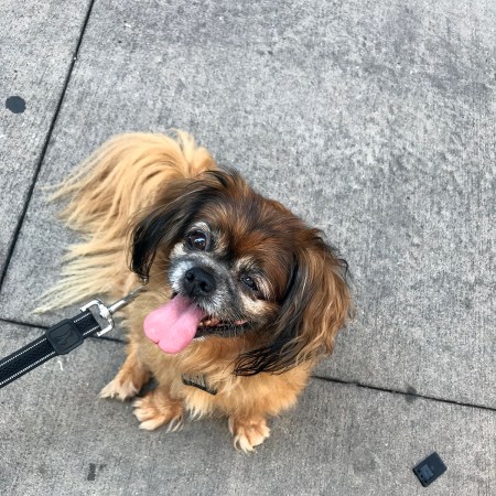 A little later, Steven and I decided to spend some time outside at Paladar, a rum bar and self-described “Latin kitchen.” I had a gift card I wanted to use up, so we figured we’d take advantage of the mild weather (well, low 80s…) and sit outside on their dog-friendly patio. Naturally we brought Rosie, who did not seem to enjoy it quite as much as we did. She was cute, though! I had a couple drinks (a meh mojito and a very tasty mango mule), Steven had a terrible beer, and we split a cauldron of guac, which is served with tortilla, plantain, and malanga (!) chips. (The plantain chips were my favorite.) I snapped a photo of the guacamole, but said photo was boring, so here’s a pic of Rosie staring up at us and wishing she were snoozing away back home instead.