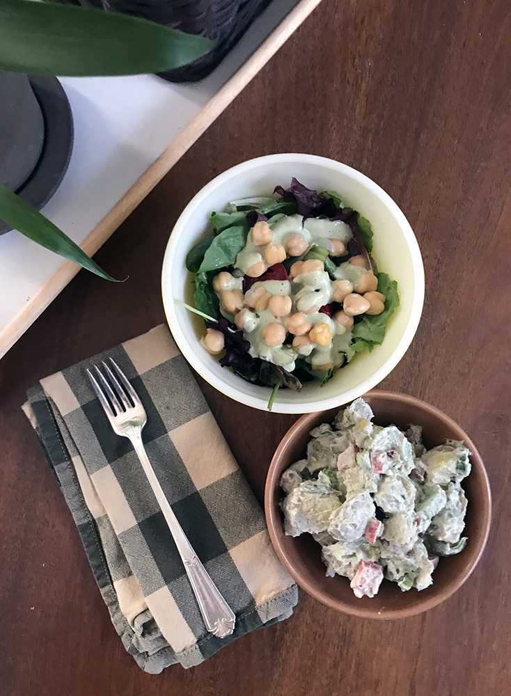 Quite a satisfying meal overall, and doubly so because I didn’t make any of it! It reminded me of the platters at NuVegan Café, a local chain serving up Southern-style vegan classics. You typically order a main and two sides, and I can never resist their mac and cheese. So filling and so scrumptious.